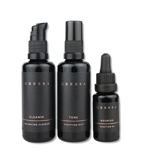 Three products we swear by: Balancing Cleanser, Purifying Toner, Purifying Oil. Your skin will thrive and after a short 3 weeks you'll see your skin improve with more balanced, clear, plump and glowing complexion.