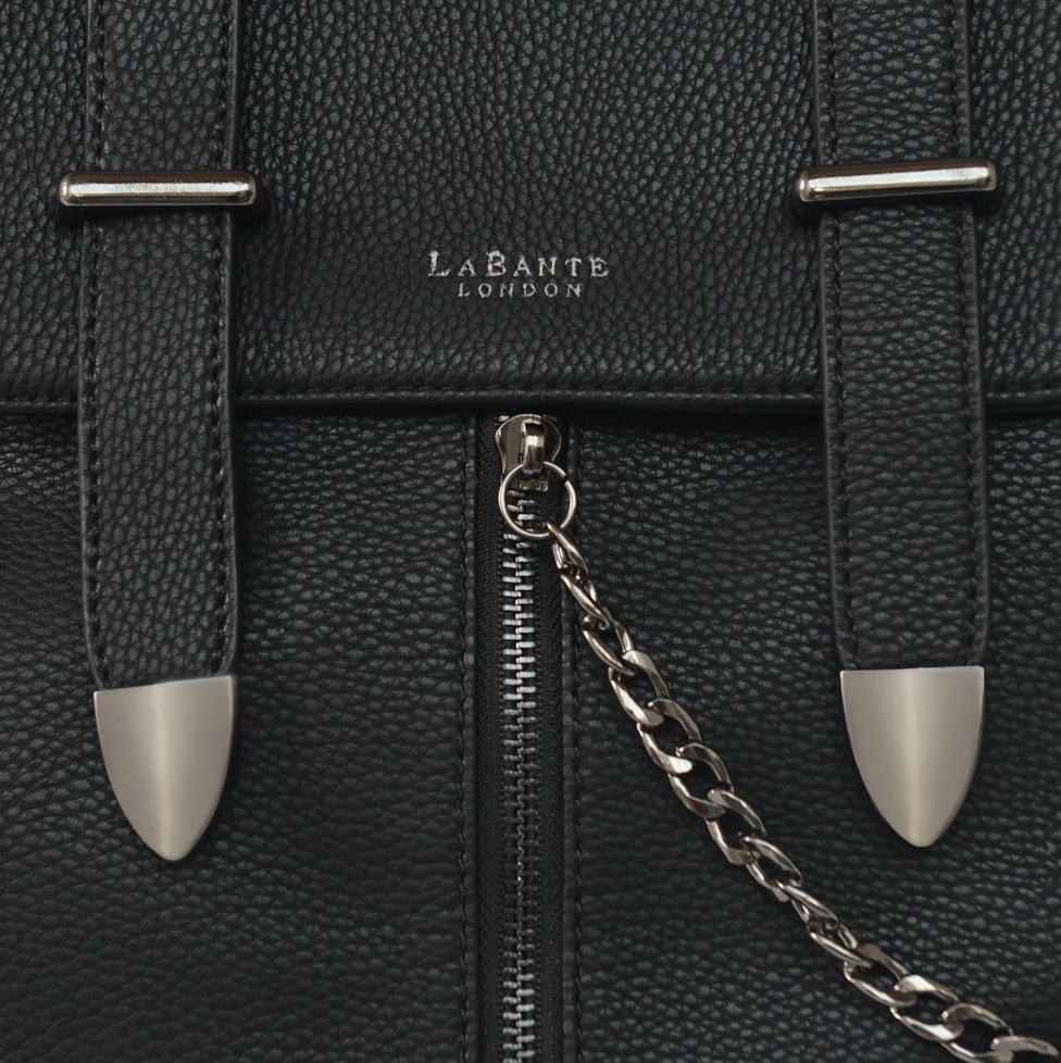The versatile Agnes backpack from LaBante London, is the perfect vegan leather backpack for your everyday needs, whether for work or travelling, you will find the double inner compartments spacious. For comfort the backpack comes with two fastening belts so it’s easy to adjust to fit. An attached chain from the centre zip puller adds a touch of style and femininity to this gorgeous bag. Made from luxurious Faux Leather this bag is 100% cruelty free, all materials used are sustainably sourced we don’t use PVC in our products. All our Bags are ethically produced. When you buy a Rucksack from Labante London you can be sure that it is 100% Vegan that means it is 100% Cruelty free, we don’t use any Animal based glues or dyes in any of our products. Labante London Bags are manufactured with recycled materials, the outers of our bags are made with vegetable by-products and Polyurethane, unlike some bag manufacturers we don’t use PVC, whilst this would reduce manufacturing cost, and increase profits, this is not the Sustainable, or Ethical route, The Interiors of our bags are made from reclaimed plastic bottles. Labante London is also an Ethical Brand, we put the health and social welfare of our workers first, we ensure that a fair wage is paid, and workers are given a balanced work – homelife, Audits and Spot checks are carried out by our team, to ensure our bags are produced in a safe ethical environment, factories where our bags are produced have SEDEX certification.