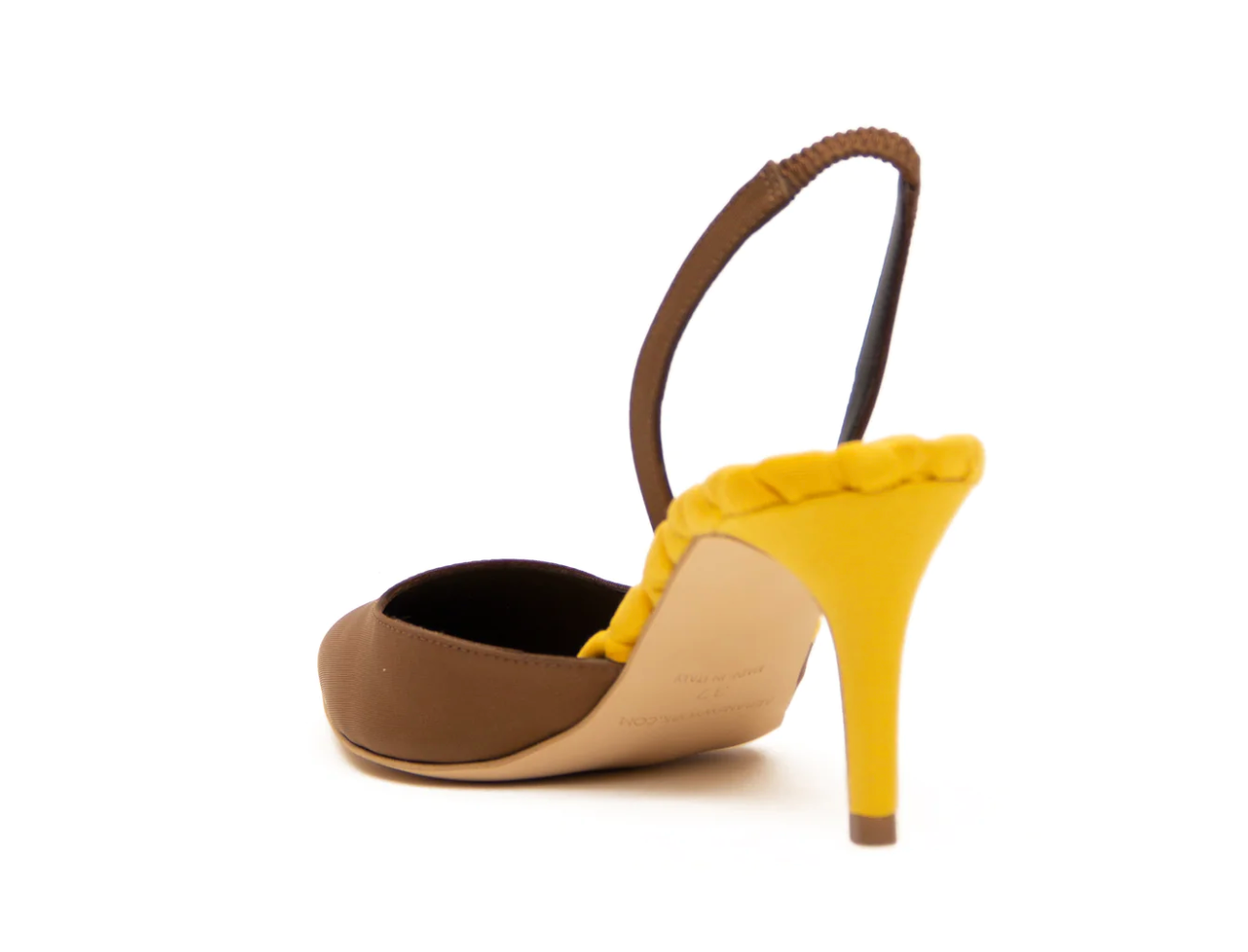 Our elegant Gabriella 75mm heeled pointed-toe slingback is just the perfect option to wear with everything. The pointed toes give a timeless elevated touch, while our practical slingback ensures a secure fit. Our signature cushioned insole ensures a more comfortable fit and a unique silhouette. Artisanally made in Veneto, Italy.
