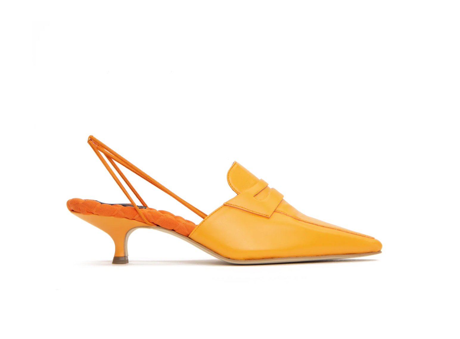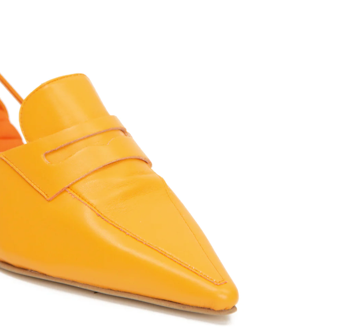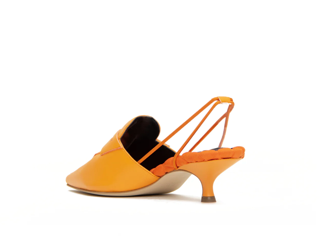 The perfect 45mm kitten-heeled pointy toe slingback loafer, featuring our