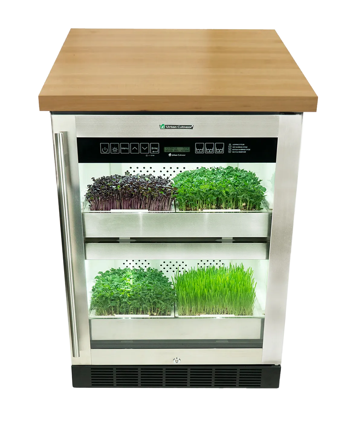 The Urban Cultivator’s pre-programmed control center self-regulates water, light, and humidity levels inside the unit. Plant each flat in a matter of minutes, and with a little weekly maintenance, you’ll be able to enjoy lush, flavorful greens in days. Vegetable gardening has never been easier or more accessible.