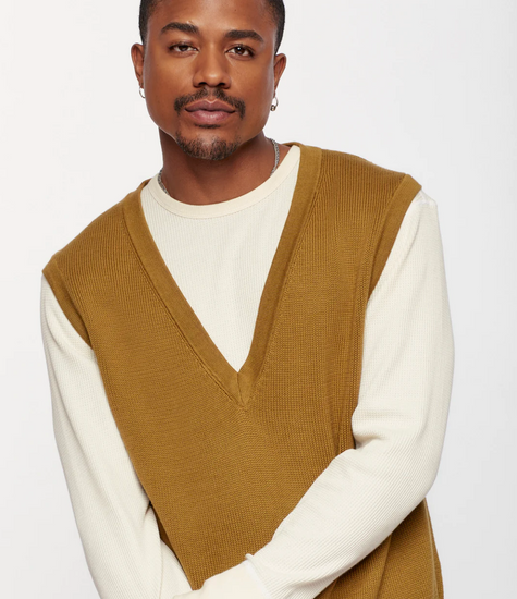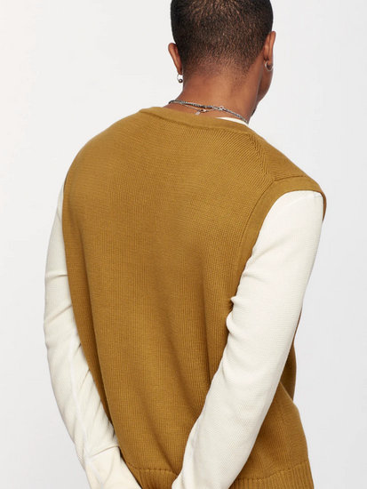 A versatile layering piece for any outfit. Crafted from 100% Egyptian Cotton, this refined sweater vest offers unparalleled softness and style. Featuring a deep V-neck, oversized fit and a modern slightly shortened length.