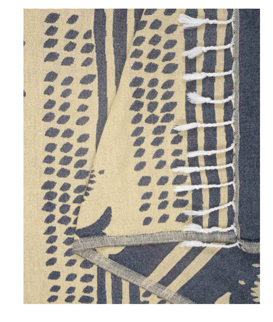 Embrace the blues with Strip Henna, featuring an allover Henna inspired design. Made from Turkish organic cotton for a softer hand feel and a better sustainable product, large size, double jacquard weave, twisted tassels, quick dry and repels sand.