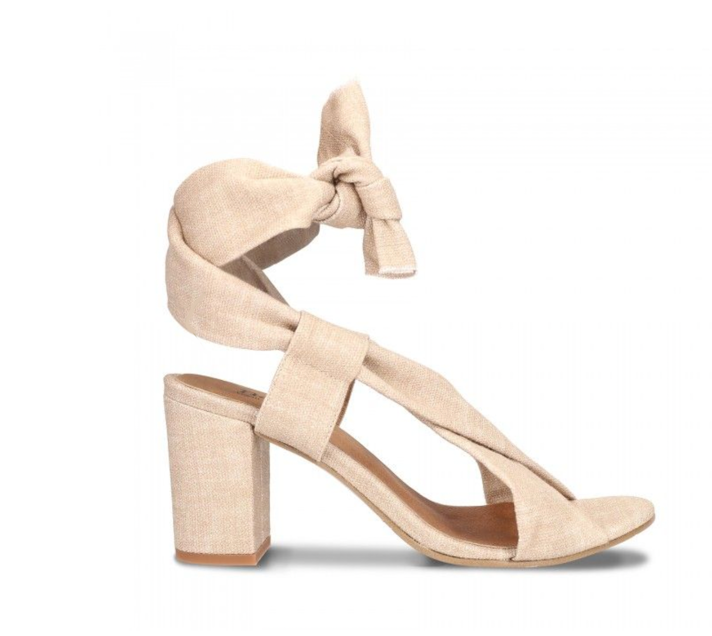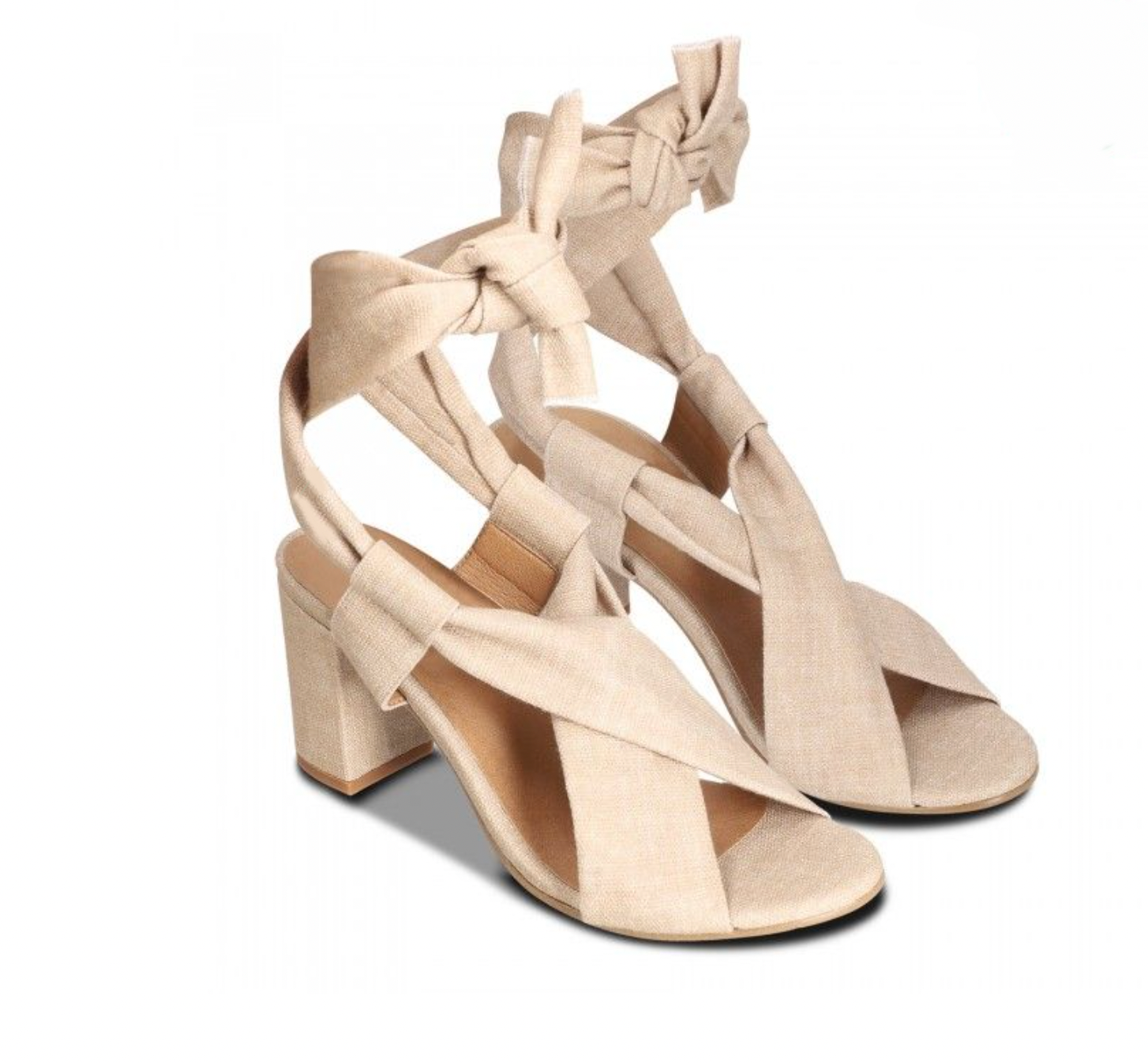 Violet Beige, the high-heeled criss-cross sandals that tie on the